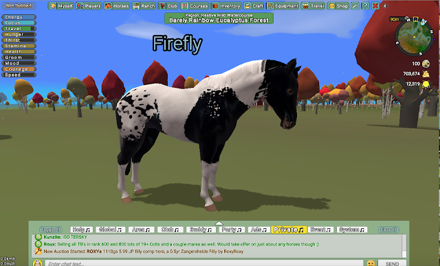 Not skittish, ornery, or lazy, though!Three days after Felicity's birthday, on a ride out from Ad Astra Village to deliver a letter, Lily and Talvi found this guy out in the volcanic biome: