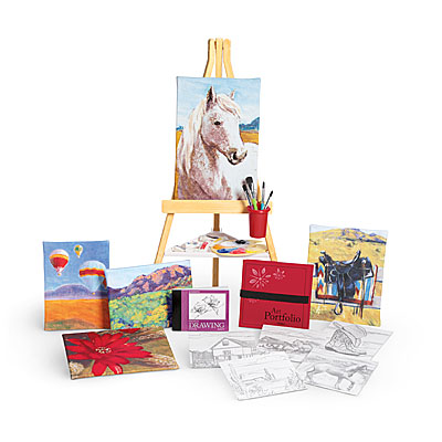 It'd love to have that easel and the painting supplies! I think Saige's paintings and drawings are gorgeous. My favorite is the one on the easel of Picasso. However, I wish this set included some blank canvases and/or a blank sketchbook. If you want to inspire creativity in girls, why only include already-finished pieces of artwork?